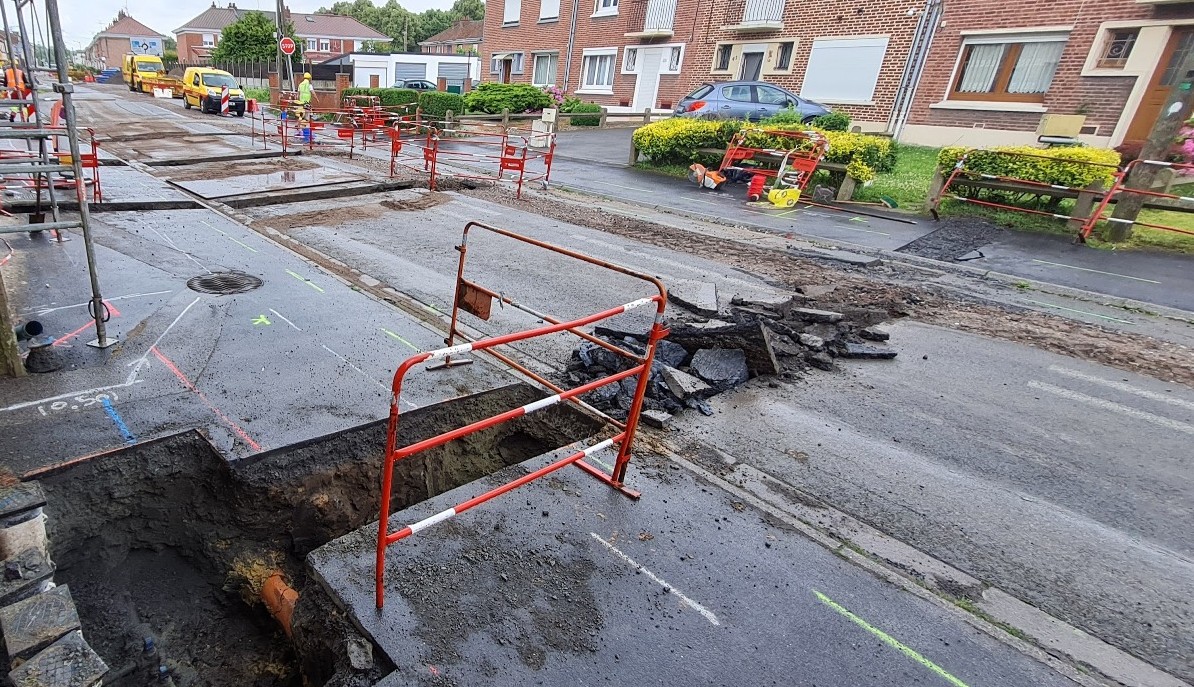 Sur le Boulevard de Verdun (Ville de Denain) et la rue de Denain (Douchy-les-Mines), nos équipes sont mobilisées pour un vaste chantier aux côtés de Noréade, les Régies du SIDEN-SIAN.