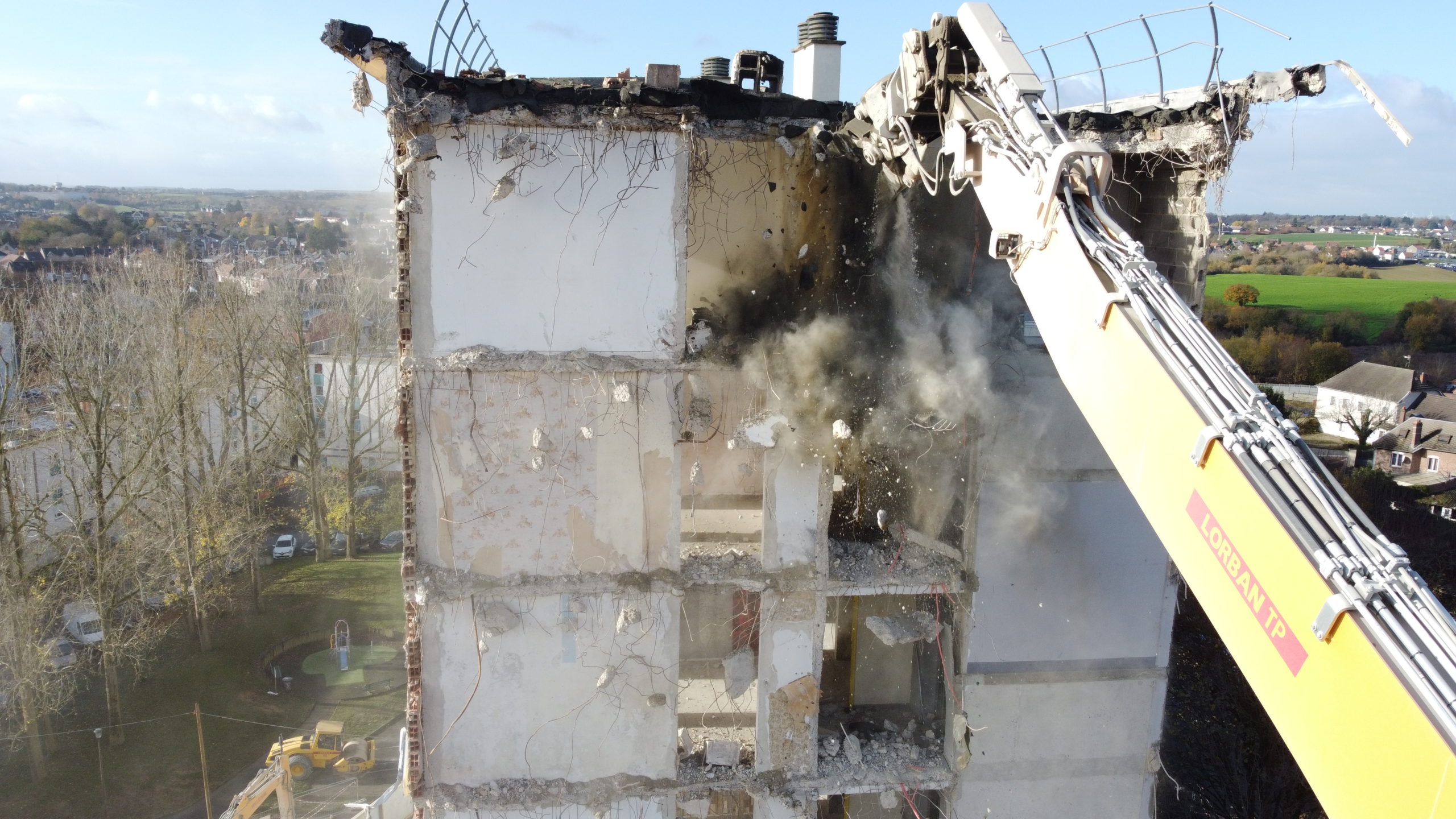 Lorban TP assure la déconstruction de la résidence Marconi (12 étages – 111 logements), dans le cadre du programme de renouvellement urbain porté par Partenord Habitat.