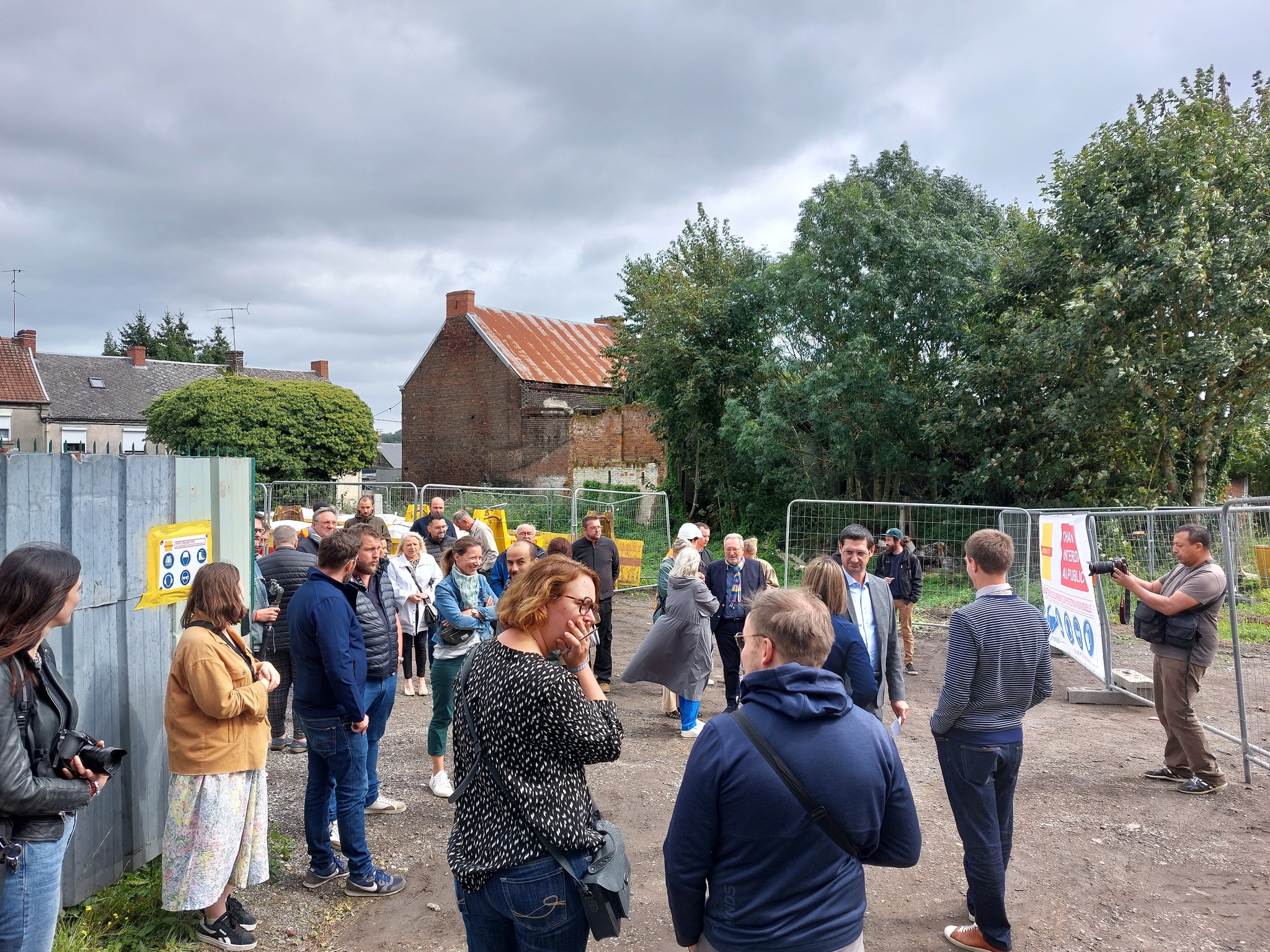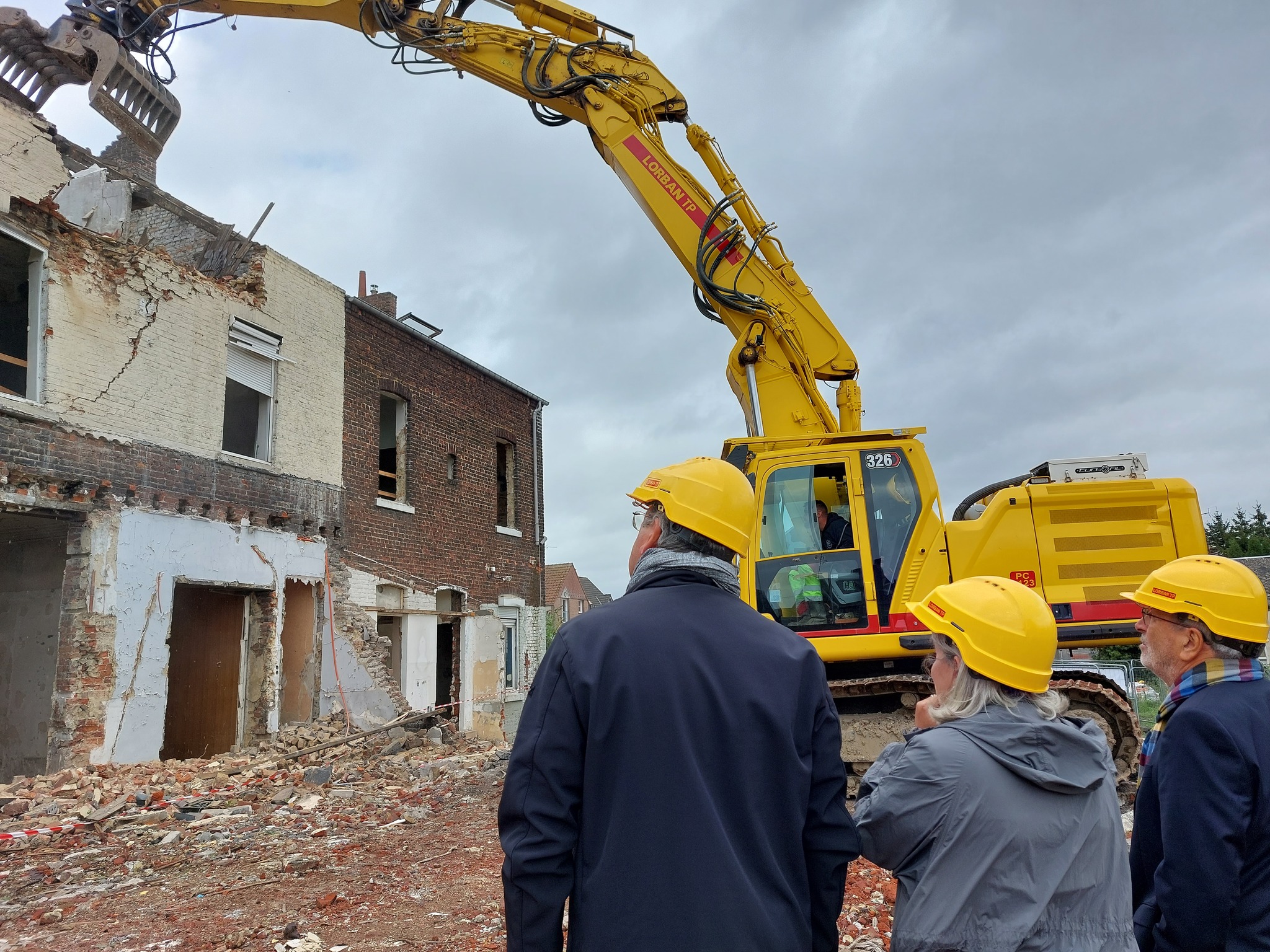 Pour marquer officiellement le début de la démolition, le premier coup de pelle symbolique a été donné par M. Giuseppe Ascone, maire de Louvroil, et M. Bernard Baudoux, président de la Communauté d’Agglomération Maubeuge Val de Sambre (CAMVS), en présence de Mme Laurence Saunier, secrétaire général sous-préfecture d’Avesnes-sur-Helpe.