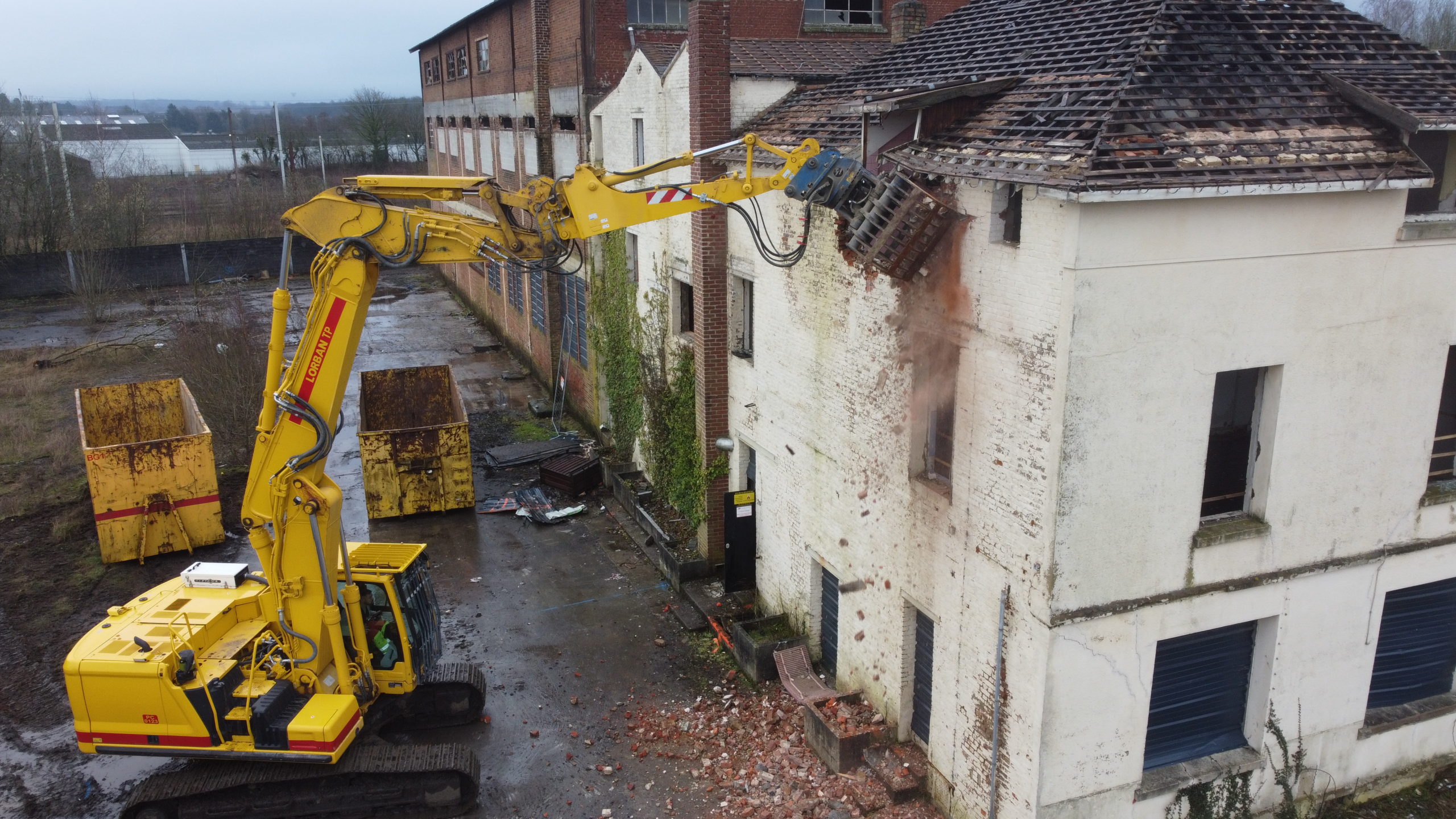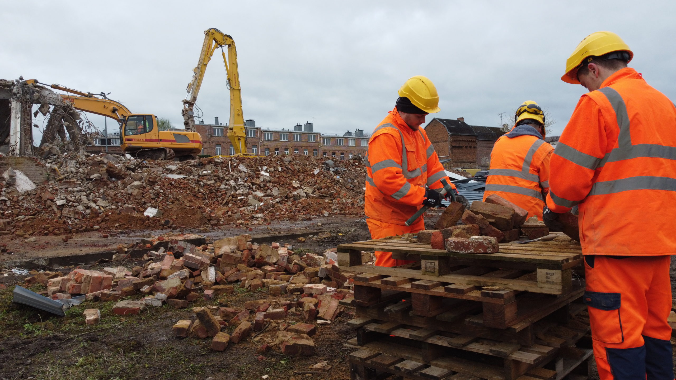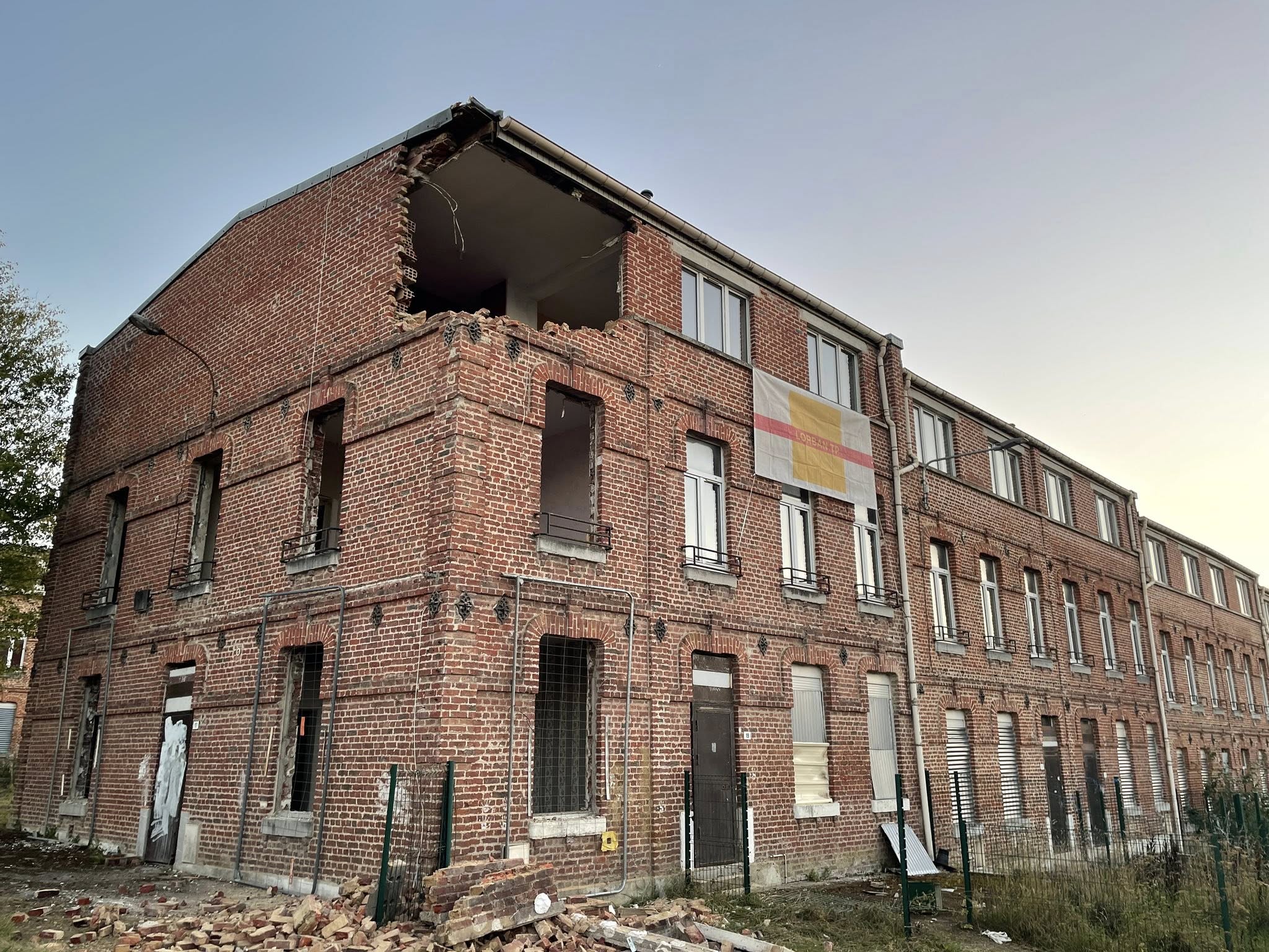 Travaux de déconstruction des 73 maisons ouvrières de la cour carrée et logements de la rue Michel Dubois à Fourmies.
